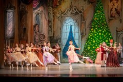 During the night, after everyone else has gone to bed, Clara returns to the parlor to check on the nutcracker. As she reaches the small bed, the clock strikes midnight and she looks up to see Drosselmeyer perched atop it. Suddenly, mice begin to fill the room and the Christmas tree begins to grow to dizzying heights. The nutcracker also grows to life size. Clara finds herself in the midst of a battle between an army of gingerbread soldiers and the mice, led by their king.